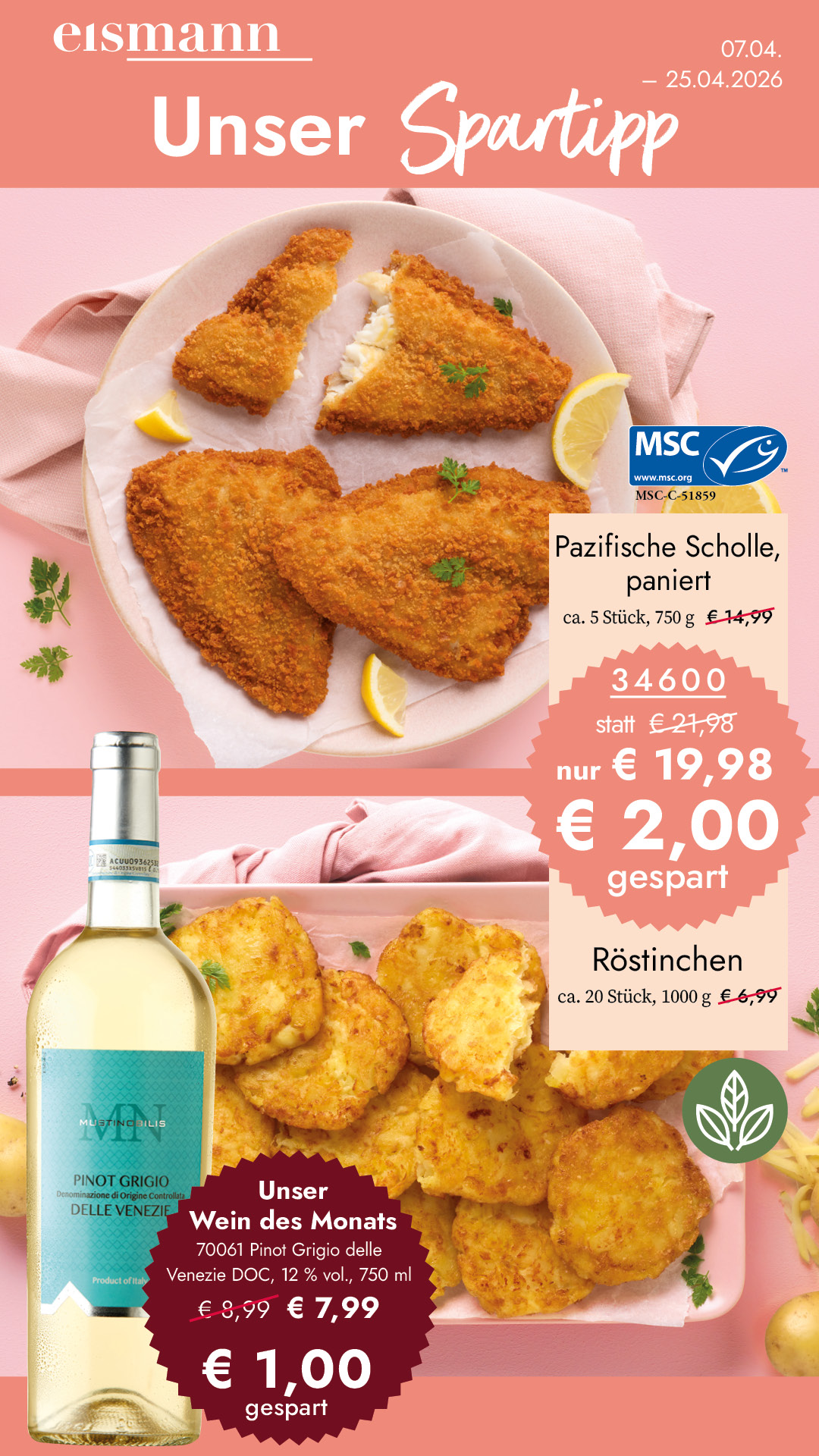 Rundum knusprig paniert gehören die saftigen Filets der pazifischen Scholle zu den Fisch-Lieblingen auf dem Speiseplan. Praktisch grätenfrei, von der schwarzen Haut befreit und bereits vorgebraten ein schnell zubereiteter Genuss. Mit seinem milden Geschmack verwöhnt das zarte Fleisch anspruchsvolle Gaumen.